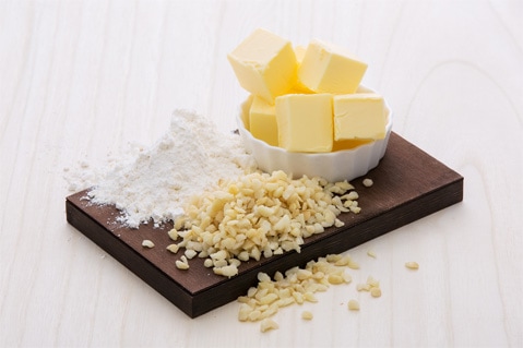 小麦粉(国内製造)、バター、砂糖、マカデミアナッツ、卵、食塩、洋酒/香料、カラメル色素 卵・乳成分・小麦 本品製造工場では、くるみを使用した製品を製造しております。