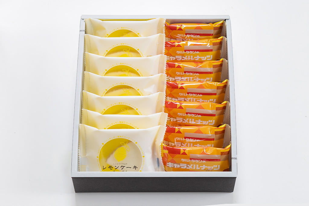 化粧箱入 ●レモンケーキ×7 ●タルトタタンのキャラメルナッツ×7