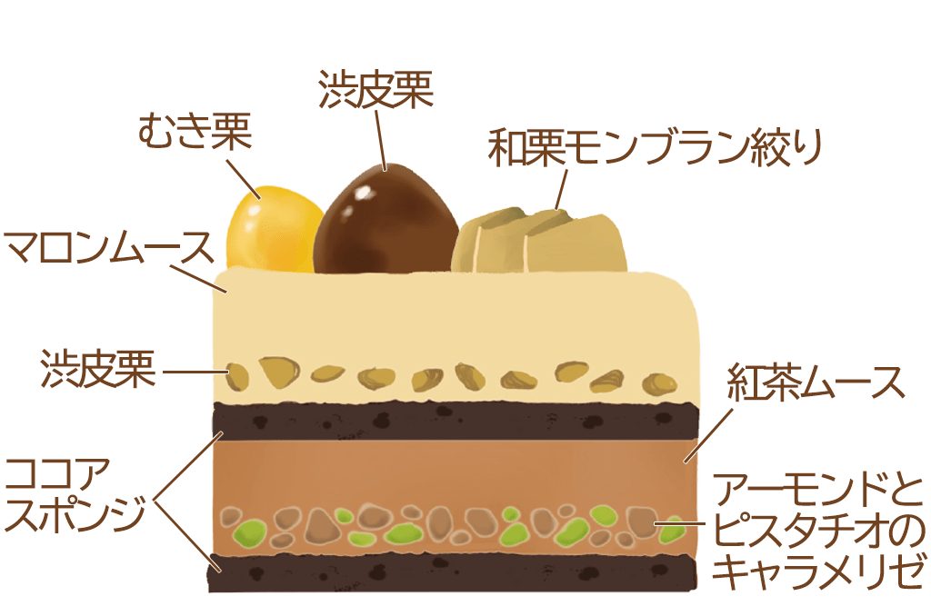 人気のマロンケーキと紅茶を組み合わせました。マロンの味を消さないように紅茶の濃さを何度も調整して完成させたパティシエ自信作です。