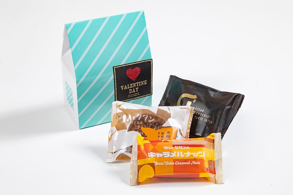 【商品内容】 ●タルトタタンのキャラメルナッツ×1 ●タルトタタンのガトゥショコラ×1 ●米粉ガレット 焙煎玄米ときゃらめる×1